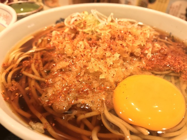 かけそば 大盛り+揚げ玉+玉子ドッピオ♡