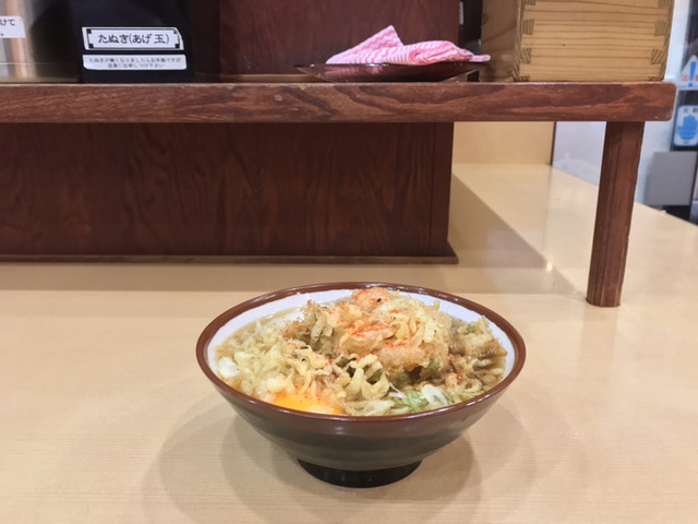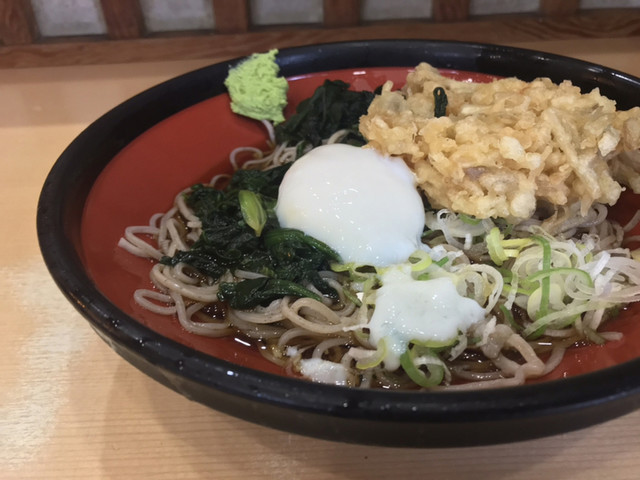 えびかき揚げそば+生たまご♡