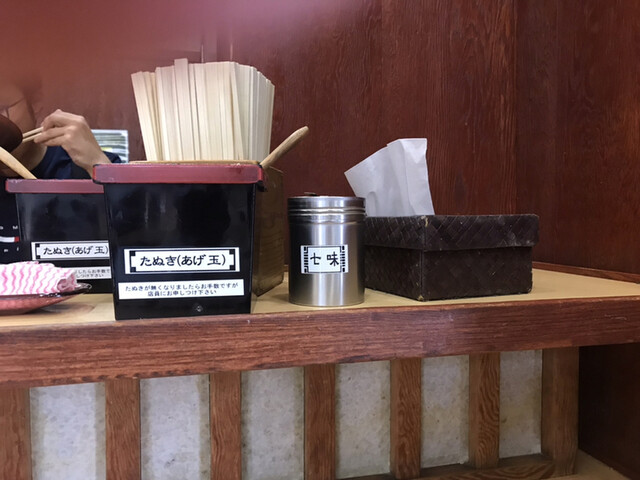 財布から千円札を取り出し、自動券売機にてえびかき揚げそばと生たまごの食券を購入、中に入り「そばで 」と告げつつ食券を渡す。