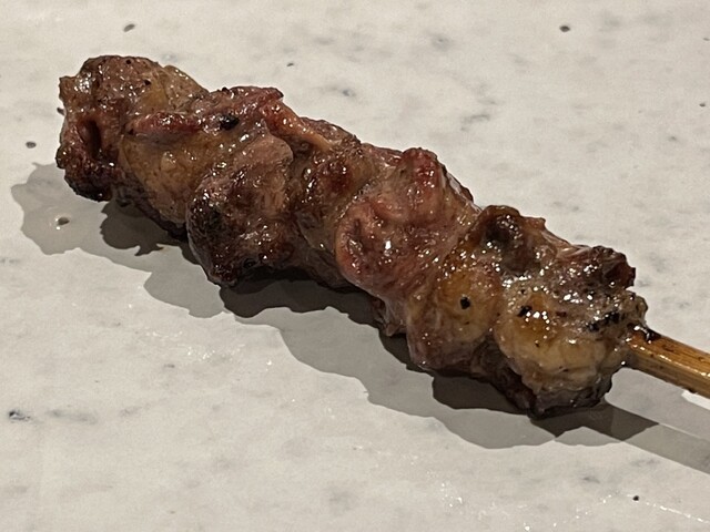 牛や豚ではよく聞く横隔膜。鶏には無いがそれに近い部分の腹筋。ムチムチの弾力。迸る旨味。そして焦げが美味い。