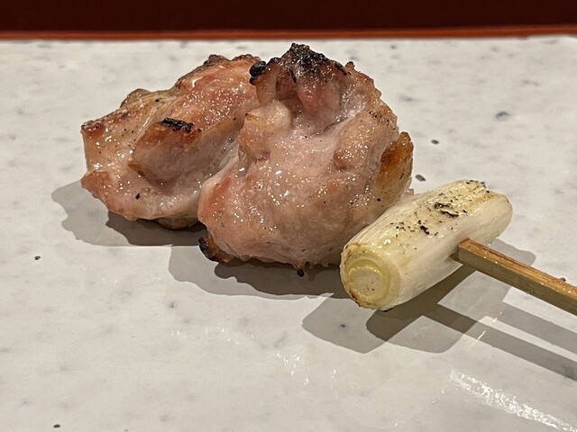 首のお肉。美しい焼き色。柔らかな歯応えにツンと練りたての辛子が合います。ひと串目からスペシャルな一品にノックアウト。