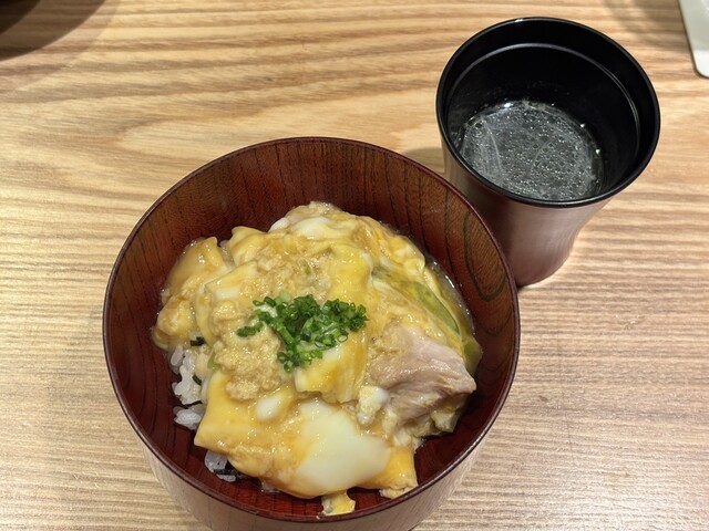 ・親子丼、そぼろ丼、スープかけご飯、稲庭うどんの4種から親子丼をチョイス。コク深い卵とお出汁で多幸感に包まれるフィナーレ。