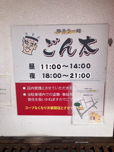 散髪、たこ焼き、がんもどきも買ってちょうどお昼ご飯の時間になりそうなんで、久しぶりにごん太で豚骨ラー麺でも食べる事にします。
