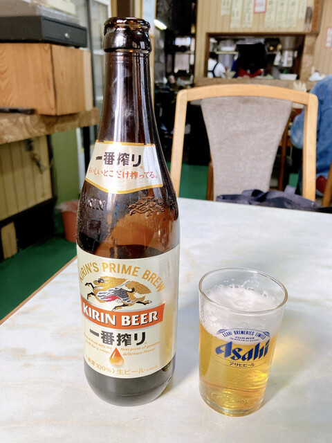 で、今回は日替り定食(600円)瓶ビール中(450円)をチョイス(o^-')b !