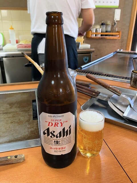 まずはマッハ瓶ビールからの豚焼きそば、トータル1180円をチョイス٩(ˊᗜˋ*)و