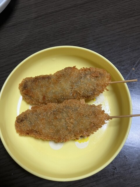 今晩の晩ご飯はラピュタパンと、もしかしたら551より美味しいかもしれない龍福の豚まんとコロッケと串カツで飲んでますが、カレーコロッケも串カツも美味しいけど、牛スジ⁈入りの手作りコロッケも美味しいです。