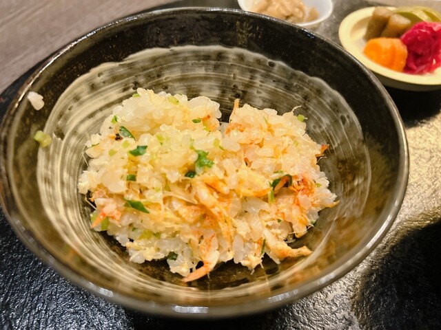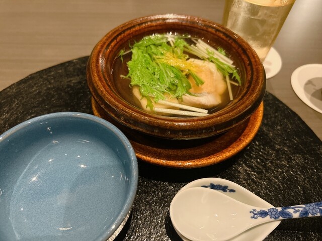 本日は、オープンスペースでの食事です。高い天井で開放的なおしゃれな空間です。コースの料理は季節感満載で会話も弾みます。本日の最後の楽しみの炊き込みご飯は、夏らしい万願寺とうがらしの炊き込みご飯です。デザートも今が旬の山梨県産の桃のデザートです。美味しい!