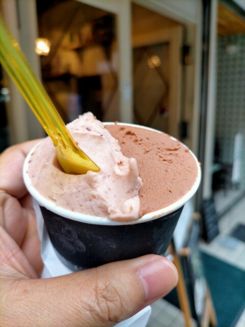 食べログアウォード2020のブロンズクラスに選出されている、ジェラートの名店にやって来ました。定番のフレーバーも捨てがたいですが、やはりコチラならではの新作オリジナルフレーバーを選んでしまいます(*^^*)ゞ