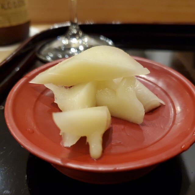 (ピリッとする辛味と甘さのバランスが良いガリ)
