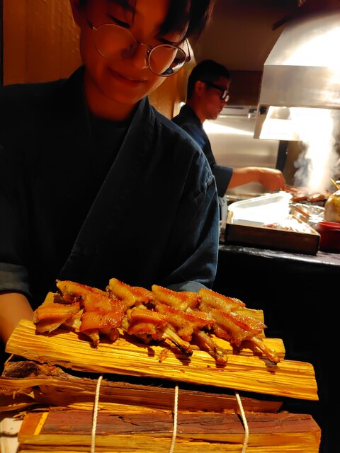 単なる焼き鳥ではなく、岡山吉田牧場のチーズを焼き台の上で燻製にしたり、
