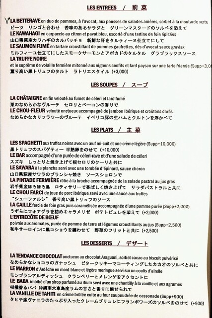毎回、ワインリストを見て自分でワインを選んでいますが、他店のように、ソムリエさんが、お客様のワイン、シャンパンの好みを顧客カルテとして、そのお客様の好みの飲み物を提供頂けると嬉しいです。