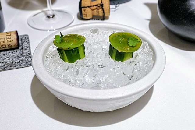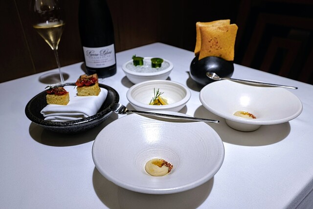 追記: お食事が終わってシェフとお話させて頂きましたが、今日頂いたメニューは全てお客様毎にメモを取られていて、来週お邪魔しても同じメニューにならないようにして用意頂けるとの事です。