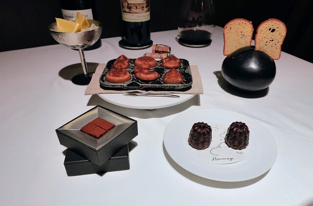ディナーフルコース2名、追加の牡蠣、シャンパン1杯、白ワイン1杯、ボルドーワイン1本、ミネラルウオーター3本を頂いて45,000円でした。