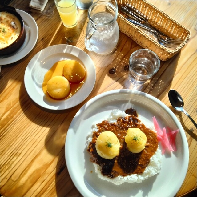 よく煮込まれて具とルーが一体化したカレーです。おいしい!辛さは選べない万人受けなカレーです。お芋もホクホク。いもおいしい。ここにバターとか乗ってたら最高ですね。