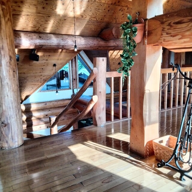 景色がきれいでログハウスな建物も居心地良いです。視力が良くなりそうな眺めです。外では自動芝刈り機が散歩していました。