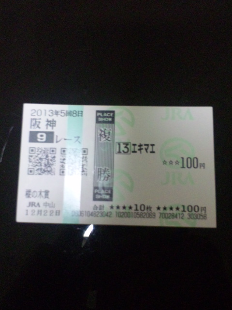 複勝大作戦最高配当!2810円GET!!!