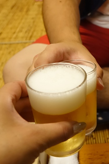 まずは~ビールでカンパ~イ! 勿論~アサヒの瓶ビールだけの提供店