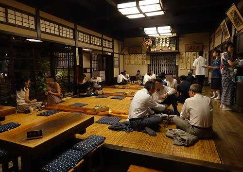 1階のお座敷に通され、苦手な畳座りです 1階にも2階にも~渋谷店にも必ず貼られています「放歌禁止」