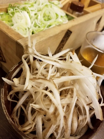 ごぼうのささがきも頼んで、薬味の葱と一緒にどっさりと乗せます