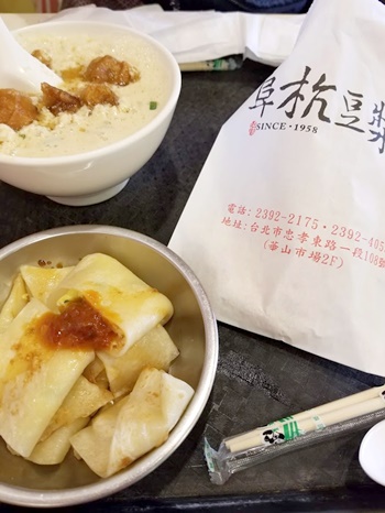 「豆漿」とは豆乳の事で、台湾では朝ご飯に豆乳と揚げパンを食べるのがポピュラーです