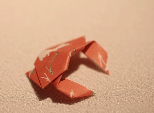 ・夏の御料理で彩られた宝箱 白い砂浜散歩するカニの折り紙