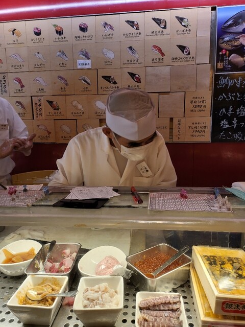 昼でも夜でも並びます、絶対に(笑)。最近は外国人客が多く、行列を気遣うこと無く食しているので、以前より待ち時間が長くなった様な気がします。何しろネタが最高!そして安価!有ればラッキーのタコの吸盤(ツマミ)がお勧めです。