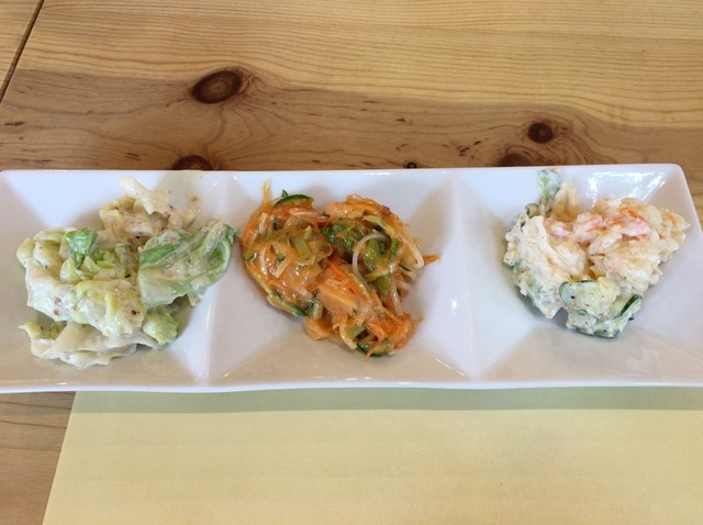 サラダは、料理されたものと、生野菜の両方があるのがうれしいです。