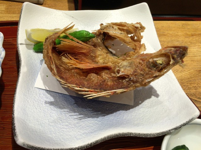 メインは刺身のようですが、「魚唐揚(ちょうか)」もついているとメニューにありましたので、注文するとき、聞いてみると、ヒメカサゴを二度揚げしたものだそうで、自信ありげに説明しているように感じました。ならばと注文しました。