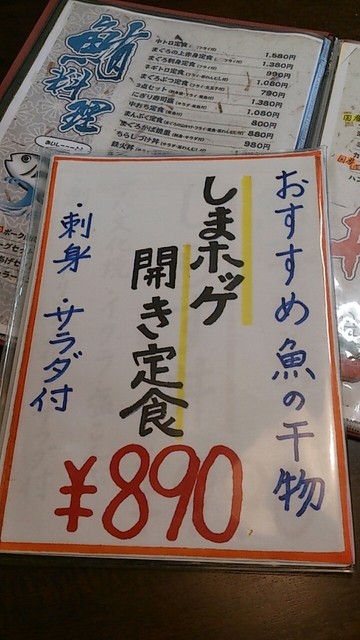 その中から、「おすすめ魚の干物」とある「しまホッケ開き定食」(890円)を選びます。