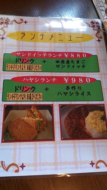 他に、サンドイッチランチ(880円)、ハヤシランチ(980円)があり、ドリンクがつきます。