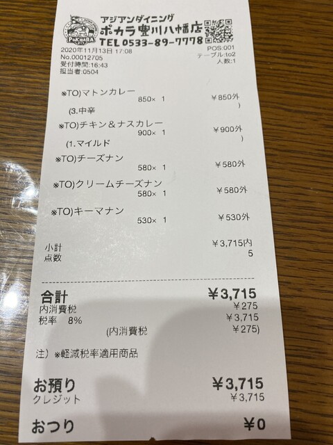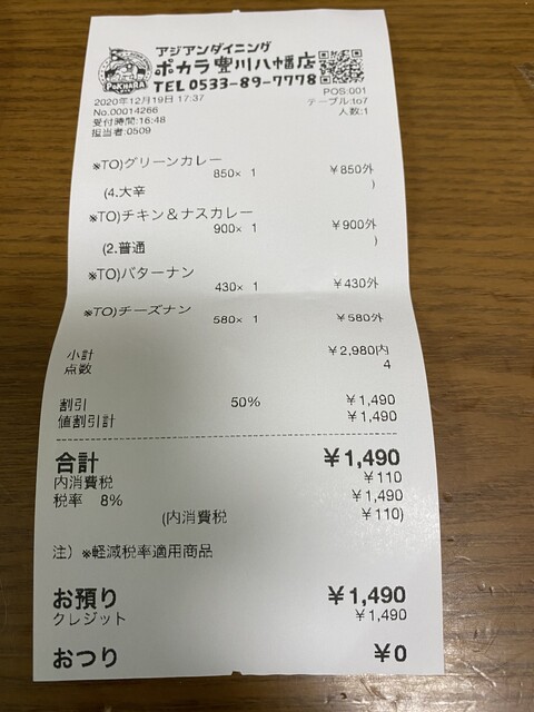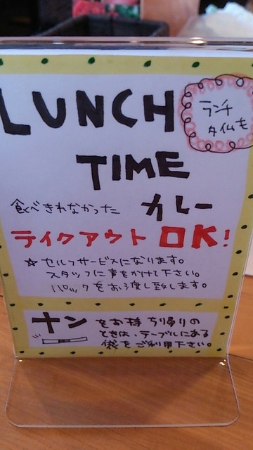 カレーも持ち帰りできると言われましたが、それは断りました。