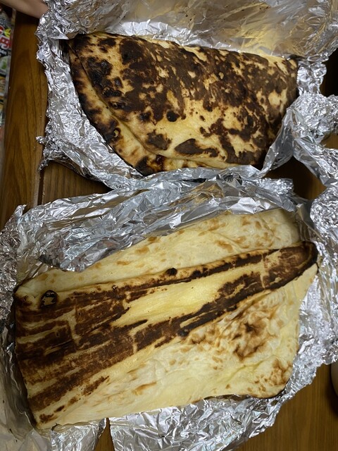 今回注文したのは、チーズナン(580円)、プレーンナン(350円)、チキン&ナスカレー マイルド(900円)、レッドカレー大辛(850円)。