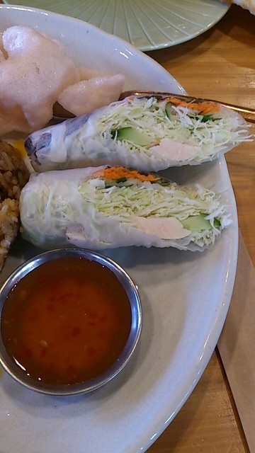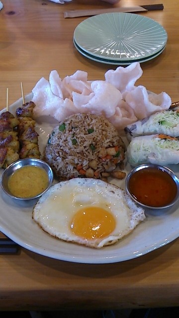 ナシゴレン、サテ、生春巻き、本日のスープ、ドリンクのセットです。