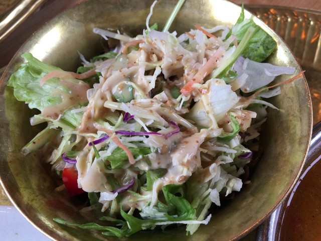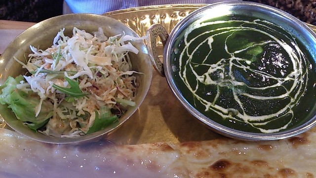 「レディースセット」(1,680円)のチキンサグ(鶏肉とほうれん草のカレー)とミニサラダ