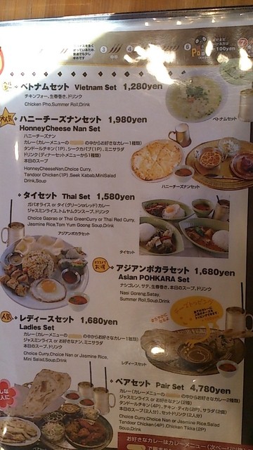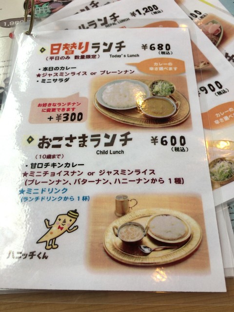 じっくりとメニューを見ながら、結局は同行者と二人ともハニーチーズナンのセットにしました。