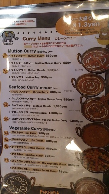 買い物をした帰路、どこかで夕食をとろうと走っているとき目にとまったポカラにしました。
