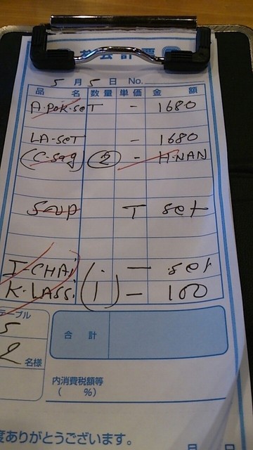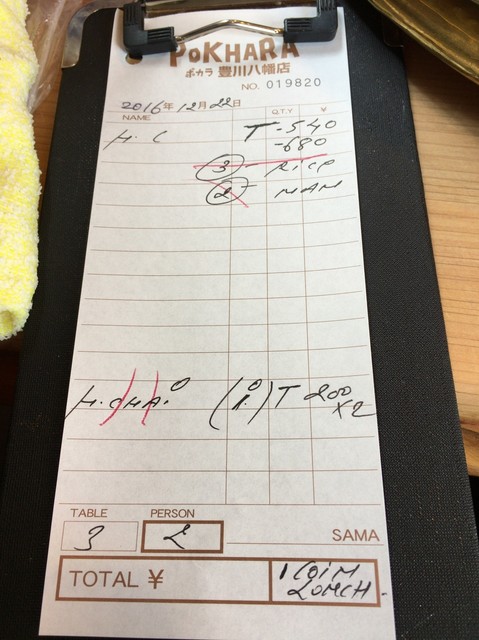 ネパールの女性でしょうか、メニューを取りに来たのですが、あまり日本語はわからないみたい。辛さも番号で伝えました。