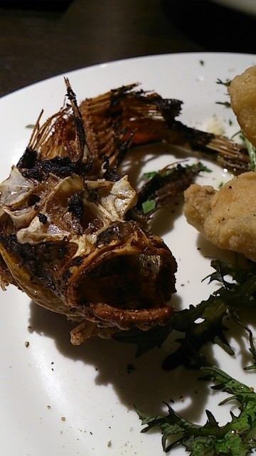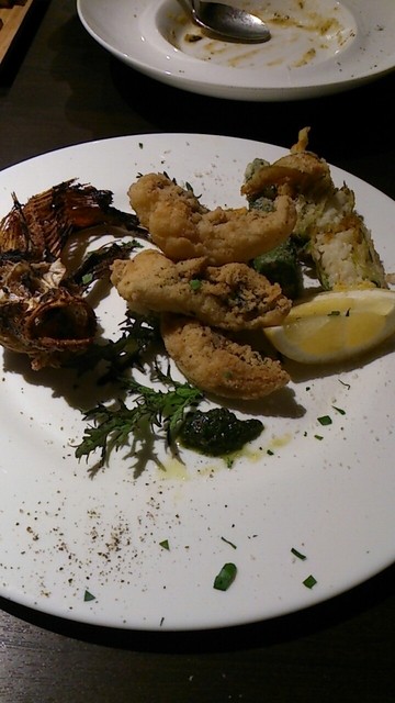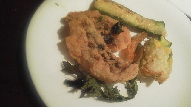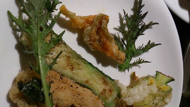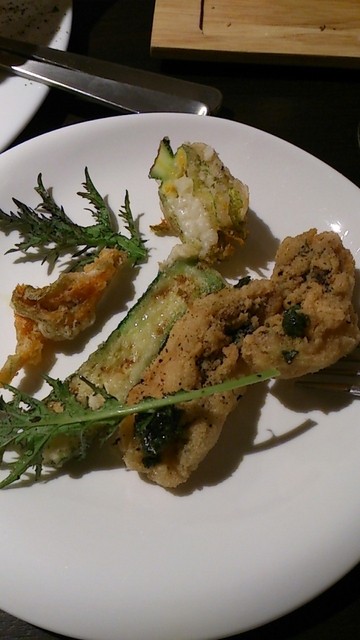おこぜのフリットは、カリカリの骨も食べました。ズッキーニもおいしかった。
