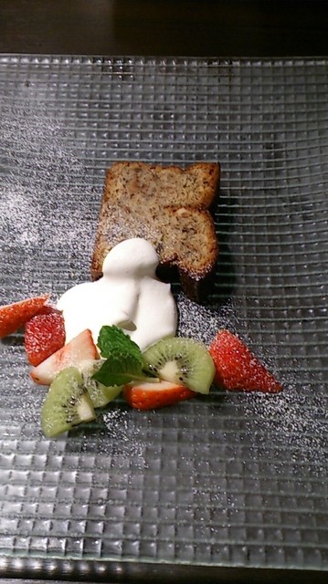 デザートとして、ヘーゼルナッツとリコッタチーズのトルタ(\500)。
