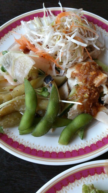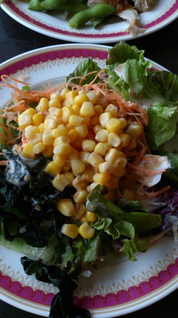 追加は全て小皿に盛ります。ただ、それほど多くはもう食べられません。ジュースのおかわりはウーロン茶にしました。ただ、ワインもあることに気づき、赤と白を少しずつつぎました。いずれも味わいからすると高価なものではないでしょう。ただ、ワインも無料というのは初めてでした。