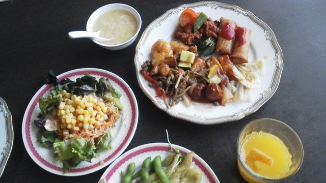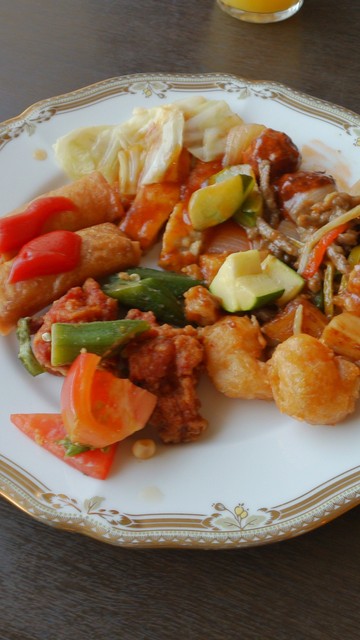 デザートの杏仁豆腐はおいしかったです。普通のフルーツはパイナップルのみだったと思います。デザートだけでなく、他の料理も種類はそこそこあるのですが、追加されるものに新しいものはなく、そういう意味では一巡してしまうともういいかな、と思ってしまいます。もっとも、新しいものが次々出てきても、腹いっぱいで食べられないかもしれませんが。