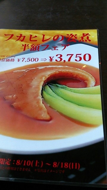 フカヒレの姿煮 お盆限定半額フェアのメニュー
