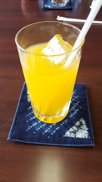 ドリンクは、アイスコーヒー。連れは子供にも飲ませられるオレンジジュース。