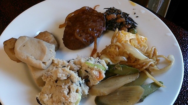 テーブルに座り、早速、料理を取りに行きます。そばはそのうち出てくるようです。