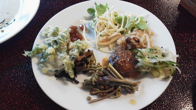 料理を取りに行き、そこに山菜の天ぷらがあったので、これは十分元は取れると思いました。