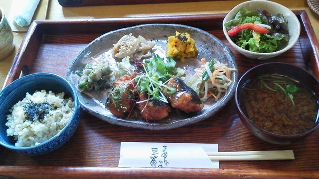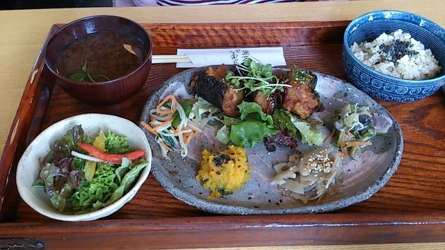 本日の日替りランチ(ひよこ豆セット)「里芋、もちきび、レンズ豆 玄米入り磯辺団子」