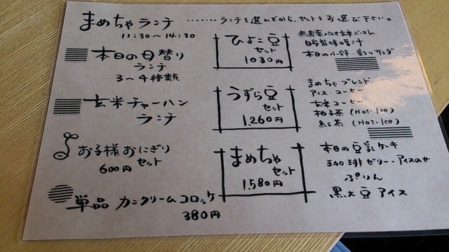 コーヒーをつけない、「ひよこ豆セット」で、いずれも1,030円となります。