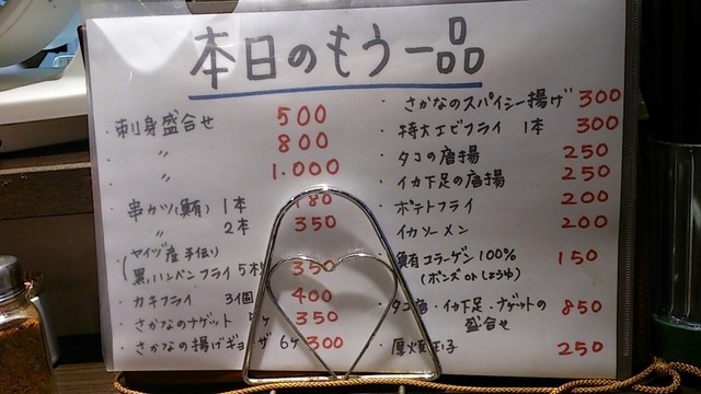 さらに、「本日のもう一品」と書かれたメニューから、「タコの唐揚」(250円)。