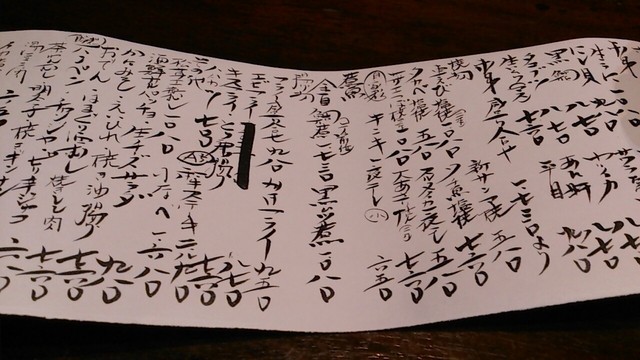 めかぶ(440円)、はまぐり酒蒸し(760円)、かきフライ(950円)、キスフライ(760円)、ハンペン(680円)、焼きしし肉(760円)、金目鯛煮(1730円)、と注文します。