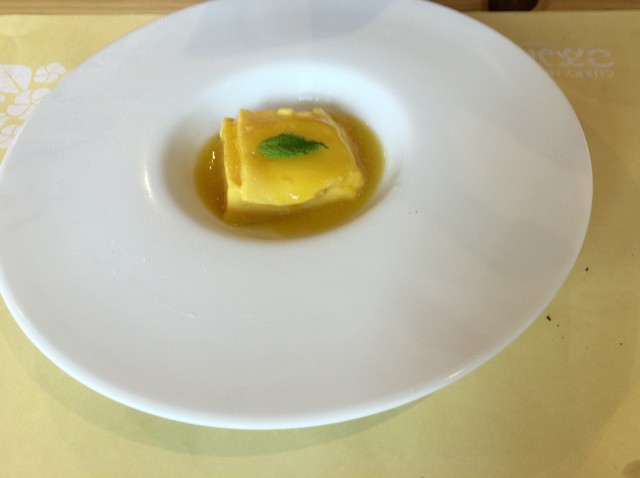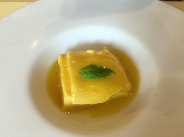 連れは、「南国の香り マンゴーのプリンとソースです」。